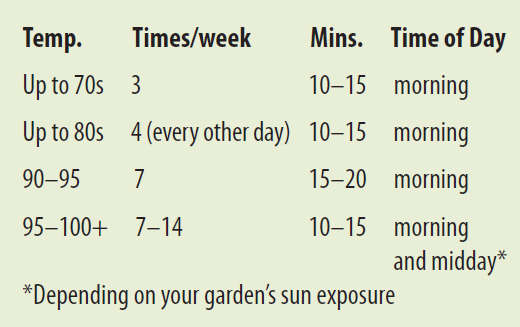 Here’s a sample irrigation schedule, based on temperature.