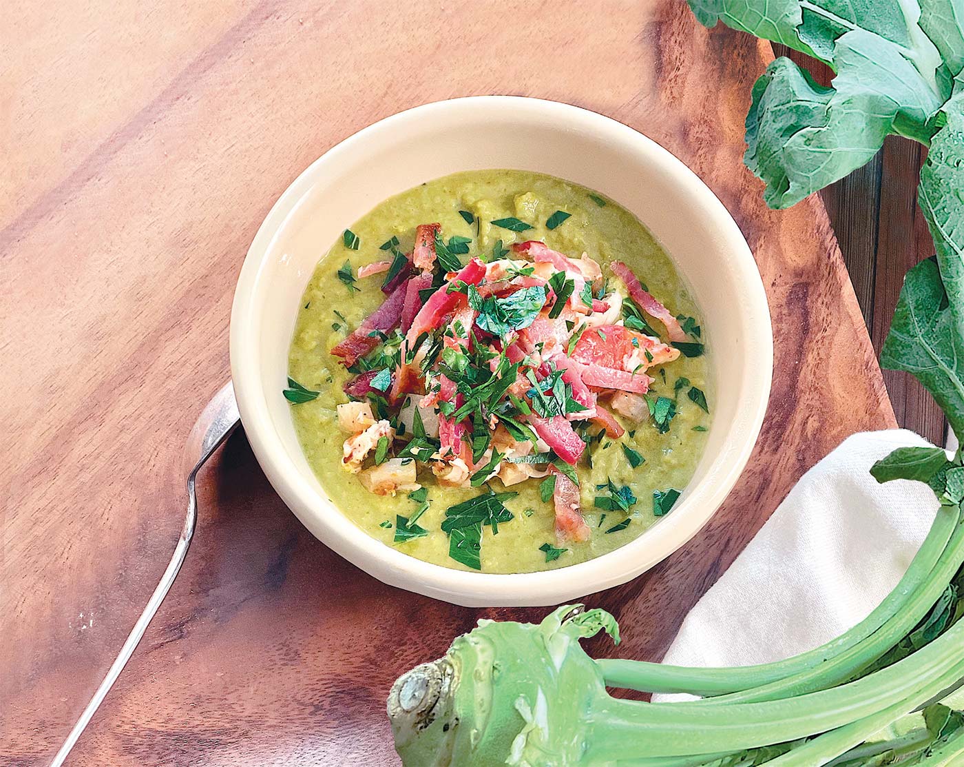 Creamy Kohlrabi Soup with King Crab and Applewood Bacon